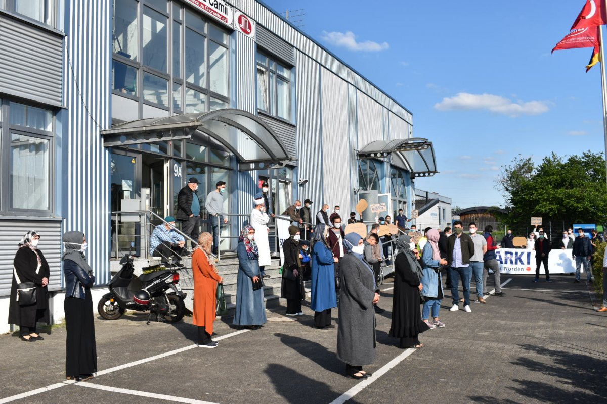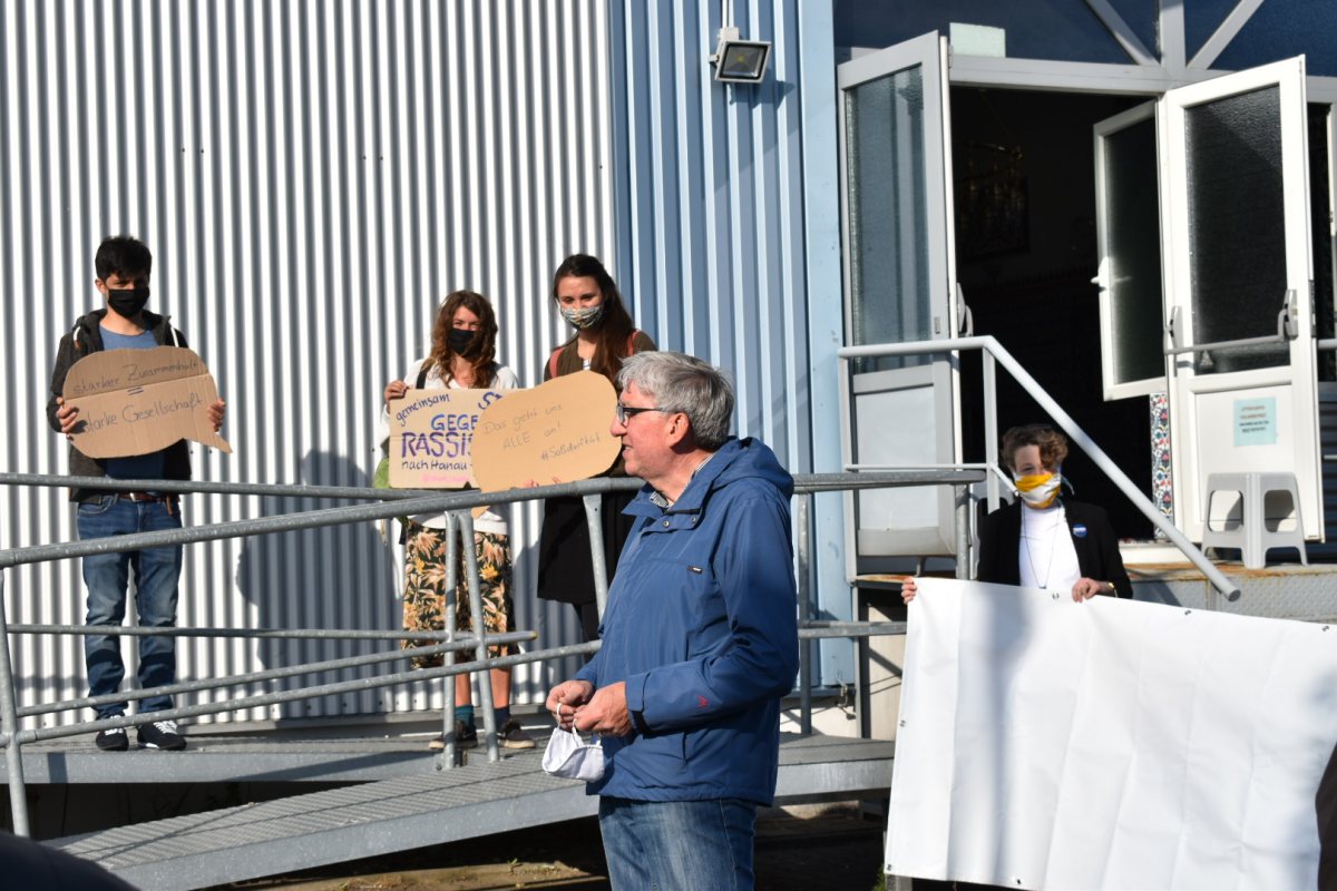 Nachdem das Gebet zu Ende war, erinnerte ein Gemeindemitglied an den Angriff mit Steinen vor knapp einer Woche und bedankte sich für die Unterstützung. Anschließend stellten sich die Aktivisten und die Gemeindemitglieder gemeinsam vor der Moschee auf, um den Zusammenschluss für Solidarität und gegen Hass zu demonstrieren.