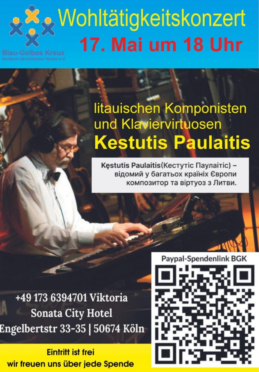 Kestutis Paulaitis, der berühmte litauische Komponist und virtuose Pianist, bereitet den Zuhörern wahre Festtage vor. Die Musik in seiner Aufführung gibt den Zuhörern Harmonie im Raum und in der Zeit. Der Zuschauer hat die Möglichkeit, die Musik mit Seele und Herz zu erleben. Die diesjährige Tour nach Deutschland wird besonders und unterschied sich von den vorherigen in Litauen und der Ukraine. Der Musiker widmet sie den ukrainischen Kämpfern für Freiheit und Unabhängigkeit in ihrem schweren Kampf gegen den russischen Aggressor.